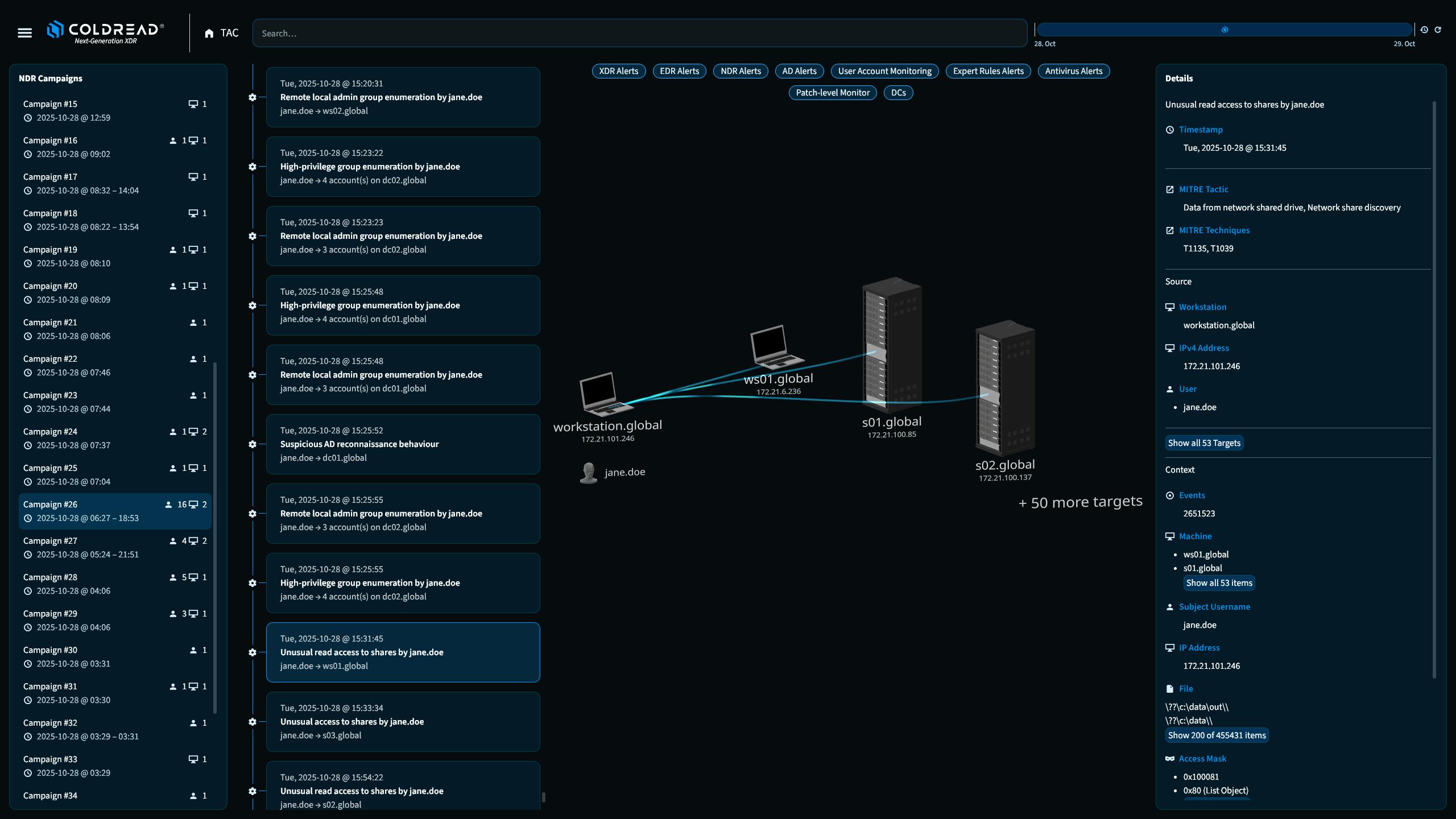 Coldread® bietet EDR, NDR und SIEM in einer einzigen cloud-basierten Threat Detection Plattform - basierend auf nativen Event Logs.